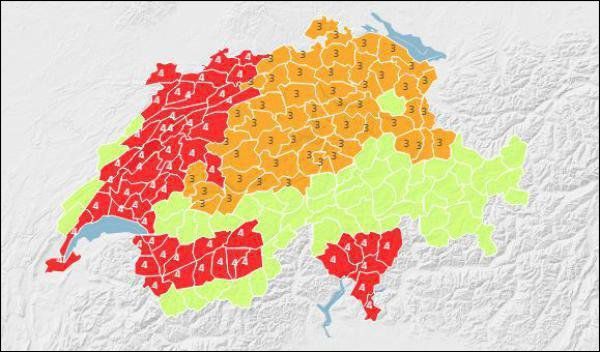 L'Ouest de la Suisse et le Valais devraient être les plus touchés. Mais les régions de Bâle et du Tessin sont aussi colorées de rouge et affichent un «danger fort». Sur le Plateau et dans une grande partie des Alpes, un niveau 3, «danger marqué», est attendu, soit un minimum de trois jours de grande chaleur.