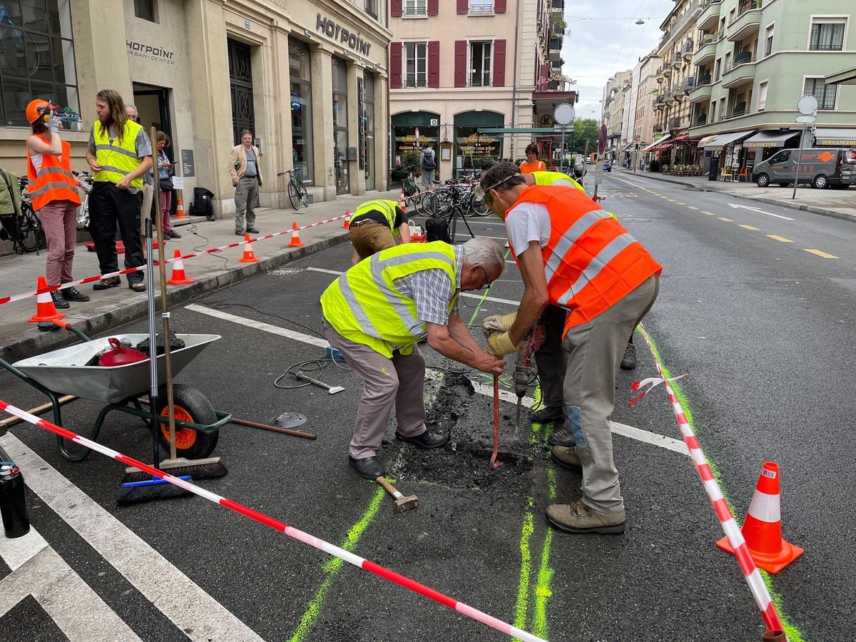 Mercredi, des membres d’Actif-trafiC et des habitants des Pâquis se sont attaqués au bitume avec des marteaux-piqueurs pour verdir le quartier. La Ville de Genève a porté plainte.